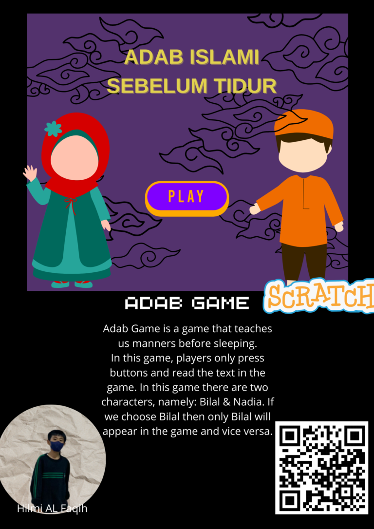Adab Game is a game that teaches us manners before sleeping. In this game, players only press buttons and read the text in the game. In this game there are two characters, namely: Bilal & Nadia. If we choose Bilal then only Bilal will appear in the game and vice versa.