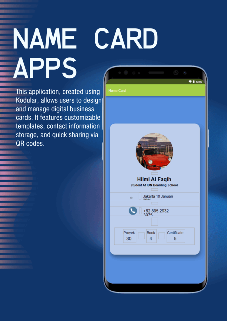 This application, created using Kodular, allows users to design and manage digital business cards. It features customizable templates, contact information storage, and quick sharing via QR codes. The app offers a modern alternative to traditional paper cards. Its sleek design makes networking easier and more eco-friendly.